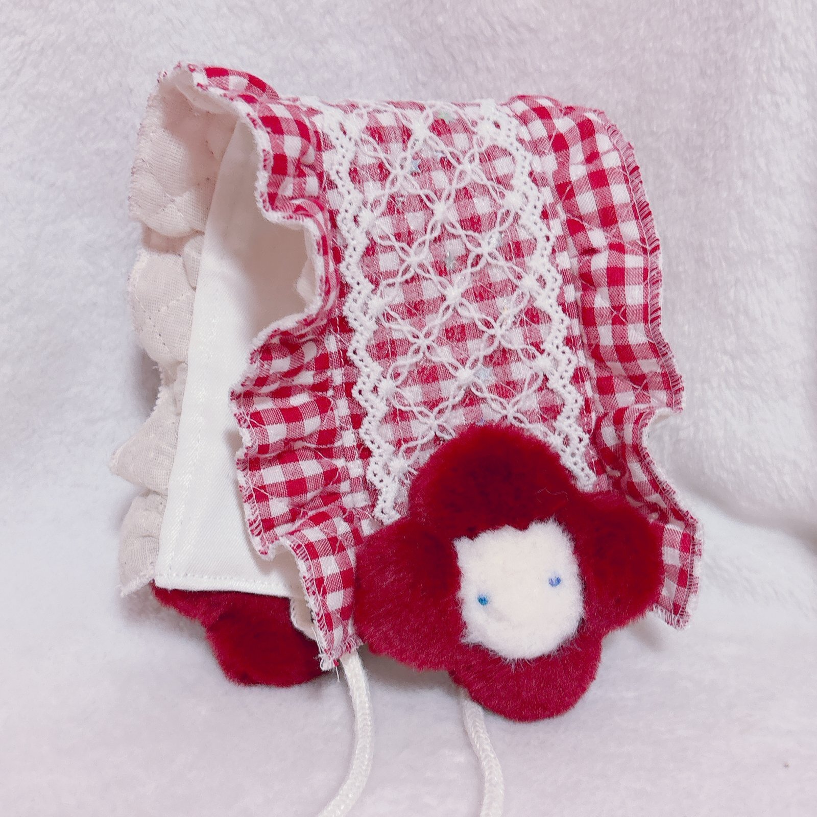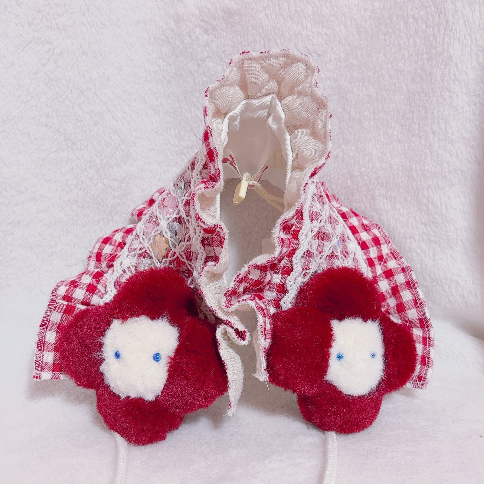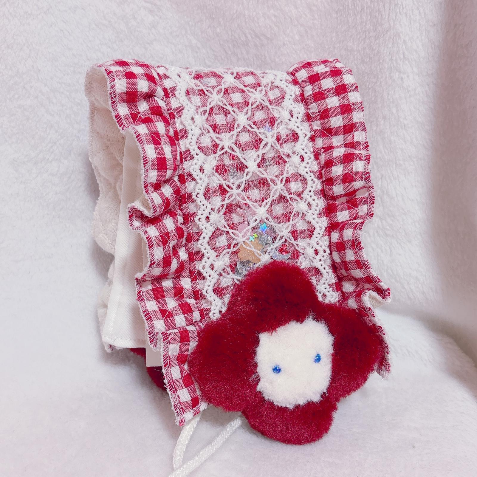 ぬいぐるみ付きヘッドドレス(お花・赤ギンガム)